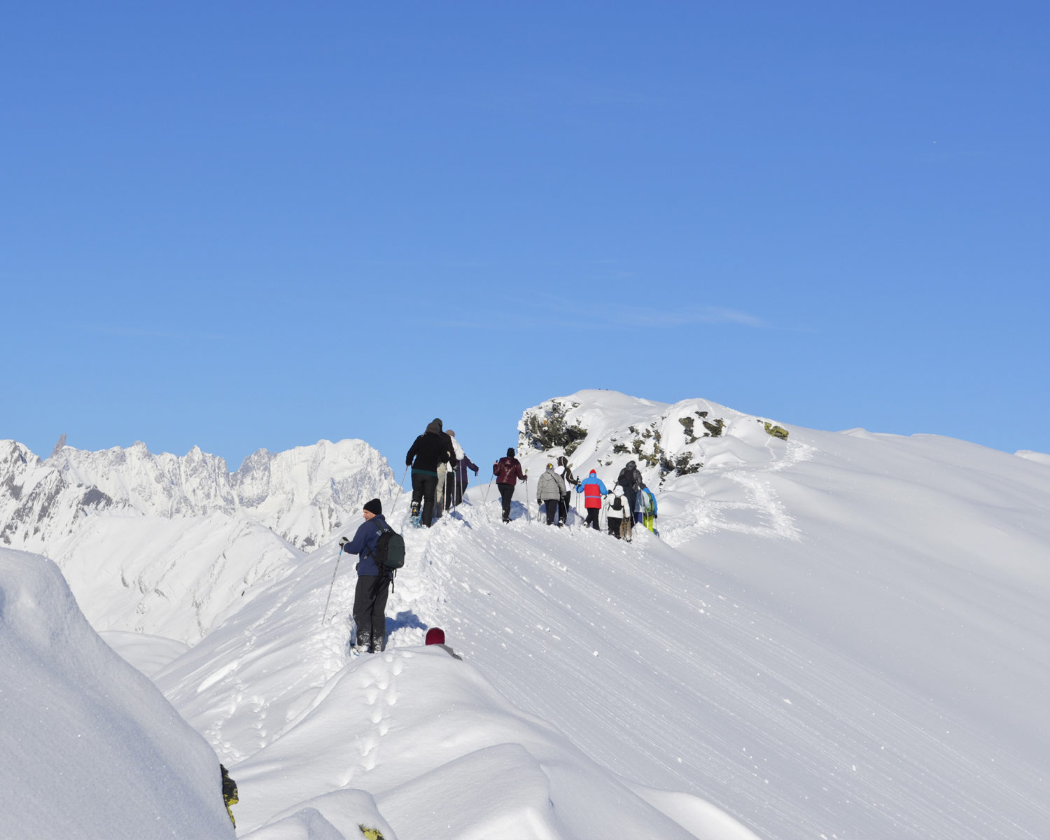 Esprit d’ouverture : premières glisses, perfectionnement, apprentissage freeride et ski de randonnée, snowboard mais aussi escapades et trip sur secteurs engagés pour les skieurs ou snowboarders confirmés et experts.